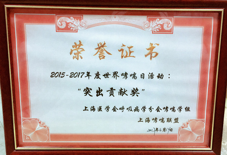 会上,我院呼吸内科因对哮喘有效的诊治和长年坚持普及预防知识收效显著而获得“突出贡献奖”。