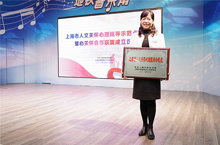 10月26日下午,第三批上海市人文关怀心理疏导示范点授牌暨心关怀合作联盟成立仪式在人民广场地铁站举行。我院成为全市第三批45家挂牌单位之一。