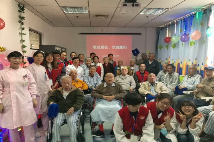 另悉,重阳节前夕,医院医务社工部带领上海健康医学院的学生志愿者们走进病房,为老人提前送上节日祝福。在精心布置的活动室里,志愿者与老人们一起歌曲、朗诵、做游戏和手指操,其乐融融。