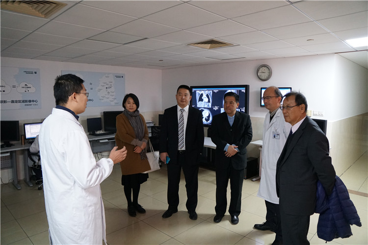 考察团一行来到联影-嘉定区域影像中心,区中心医院院办副主任、放射科主任助理梁凯轶向大家介绍了影像中心成立以来取得的成效以及运行模式。黄旭元院长表示,区中心医院作为区域医疗中心,通过承担影像中心等集约化医疗中心的建设,利用信息化手段,对促进区域内优质医疗资源共享,实现区域内同质化医疗服务有着积极的推动作用。