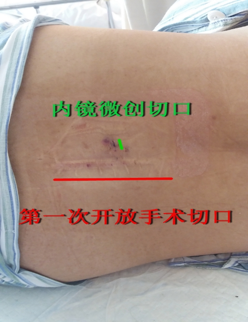 33岁的小赵, 19岁时因严重的“腰椎间盘突出症,坐骨神经痛”,做了传统的开放式手术治疗。近半年来,小赵明显感觉到左下肢从腰臀部到足底放射性疼痛并伴有足底麻木,甚至躺在床上翻身都有困难。而外院已诊断明确---L5S1腰椎间盘突出症术后再发,建议再次开放手术治疗。对于再次开放手术,考虑到术后恢复以及腰后尚有约5厘米的手术疤痕,小赵心中无疑是顾虑重重。偶然间,听亲友介绍说区中心医院现在有一种内镜技术,能够微创治疗椎间盘突出症,效果很好,康复又快。小赵慕名来到我院骨科刘明轩主任医师的专家门诊,经细致查体阅片后,确定可以用微创手术解决他的痛苦。
