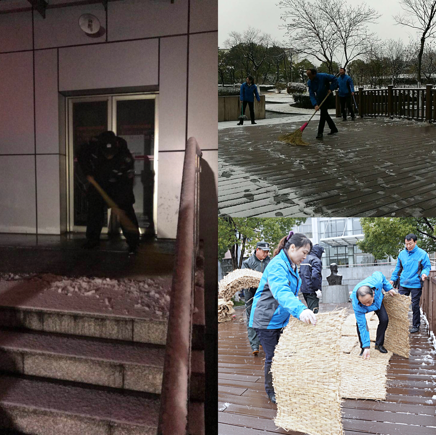 1月25日清晨6时许,漫天飞雪,物业、安保以及保洁人员等提前到岗,对门急诊主要出入口积雪进行清扫,并撒上工业盐防止积水结冰。早上7点15分,所有主要出入口积雪全部清理完毕。而外,后勤保障部对全院外围道路进行了拉网式排查,确保道路不积雪、不结冰,确保车辆及行人的安全。院内各坡道也已加铺草垫防滑,确保安全。