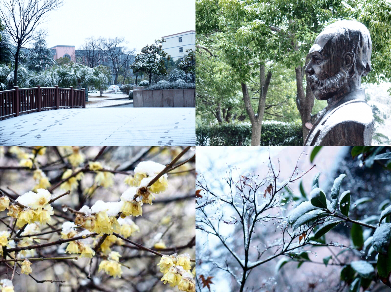 一早起来,鹅毛般的雪花纷纷扬扬地飘落下来。放眼望去,银装素裹的嘉中心比往日更加小清新。雪落在小草上,草尖被染白了;落在房顶上,房顶被染白了,落在树枝上,树枝也被染白了。
