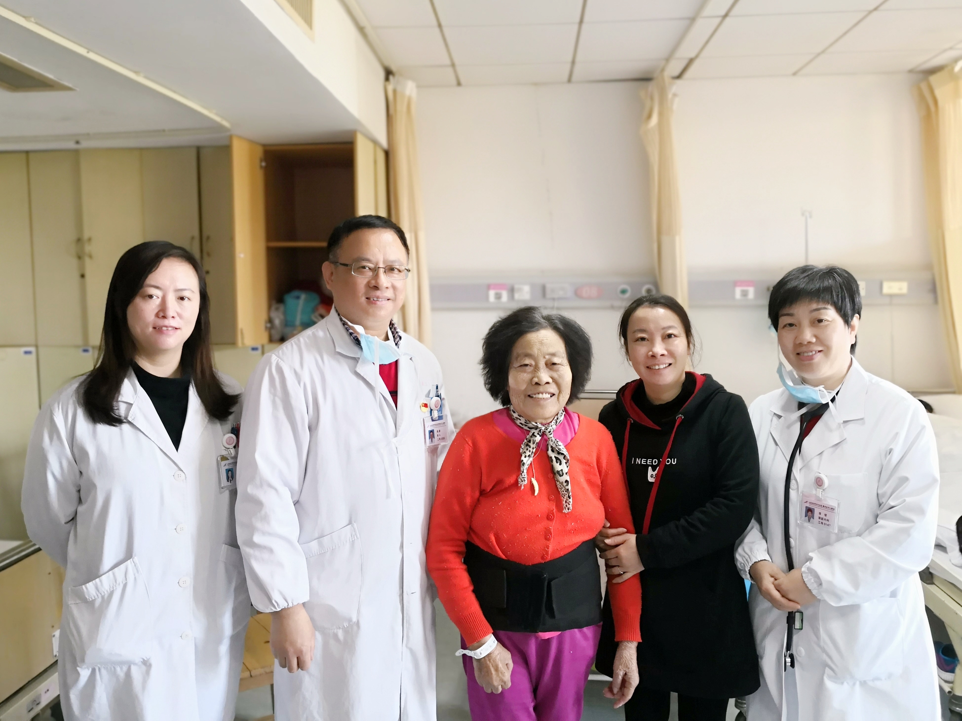 手术非常顺利,术后患者疼痛明显减轻,殷主任多次来到肾内科亲自指导功能康复锻炼。术后第三天,在家属的搀扶下汪阿姨慢慢下床,迈出术后第一步,难掩心中的激动之情,才有了开头的一幕。如今,汪阿姨已康复出院,随访时,阿姨说术后恢复得非常好,每天坚持功能锻炼,现在都能出门遛弯了。对嘉中心医护人员的精湛医术和精心护理,汪阿姨再三表示感谢。