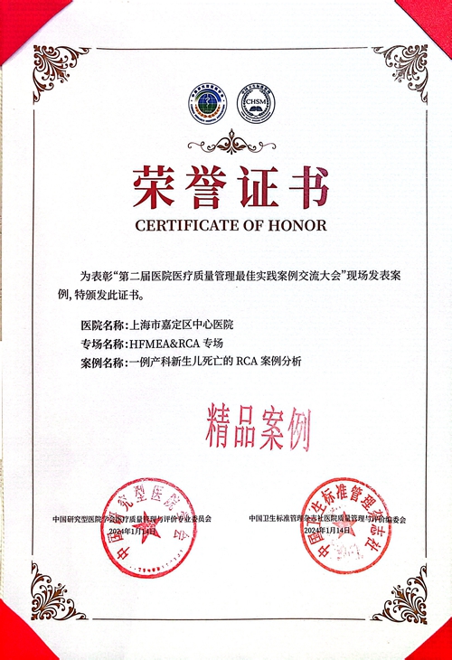 2024年1月12日至14日,中国医院医疗治疗管理与创新发展大会暨第二届医院医疗质量管理最佳实践案例交流大会在广州召开。大会现场,大咖云集、盛况空前,在全国300余个案例中,仁济医院嘉定分院(嘉定区中心医院)护理团队申报的“一例产科新生儿死亡的RCA案例分析”、“缩短新冠救治隔离定点医院孕产妇就诊时间”2个案例均荣获“精品案例奖”。