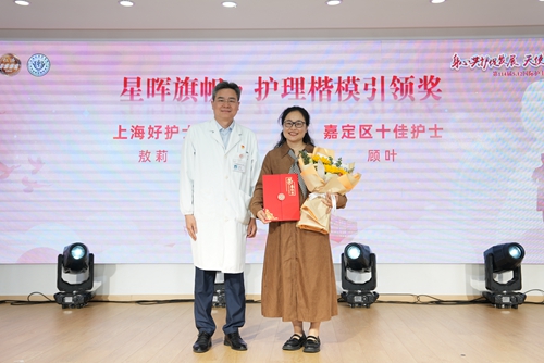 活动中,院长戴慧莉向全院护理工作者致以节日问候,感谢大家为守护百姓健康付出的辛勤汗水和无私奉献。她指出,过去一年来,护理团队在院党委的坚强领导下,交出了一份令人瞩目的答卷:成功获批6个市级实训基地,在全国质量管理、健康科普、叙事护理等竞赛中屡获佳绩,科研竞争力跻身本市区级医院前五,更培育出“左英护理奖”“上海好护士”等一批优秀护理人才。同时强调,护理是医院发展的“隐性引擎”,要进一步彰显和释放护理价值,将健康护理力转化为可持续生产力,为医院高质量发展不断注入新的动能。