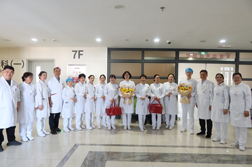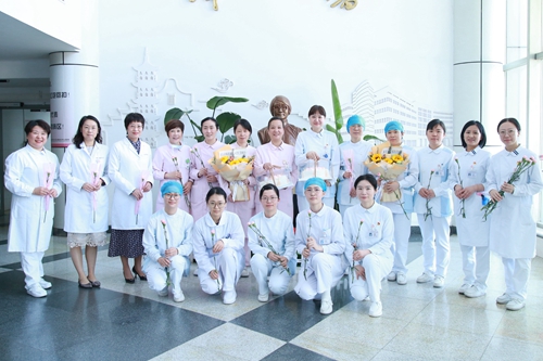 当天,院长戴慧莉、党委书记谢岳林、执行院长曹励欧分别带队深入各临床科室,为护理人员送上鲜花、蛋糕和诚挚的节日祝福,感谢她们在平凡岗位上的坚守与奉献。香甜的蛋糕与娇艳的鲜花,承载着医院对护理团队的深切关怀,也传递了“尊重护士、关爱护士”的医院文化。