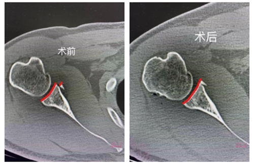 经急诊医生手法复位并进一步检查后,发现其肩关节盂边缘存在骨折块移位,需手术干预。在了解到医院可采用关节镜微创技术进行治疗后,患者打消了对传统手术的顾虑,并很快接受了入院手术。术后第二天,患者伤口小、痛感轻,恢复良好,不久便康复出院。一个月后复查显示,其肩关节功能已大部分恢复。